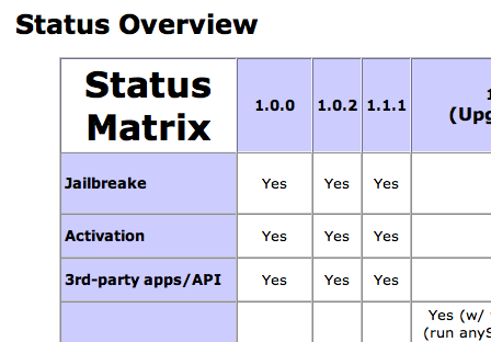 Iphone Status Ticker är en fiffig sida som löpande uppdatera med information om statusen på olika hack som bland annat gör det möjligt att köra tredjepartsprogram och att använda iPhone i länder där den inte är till salu än.